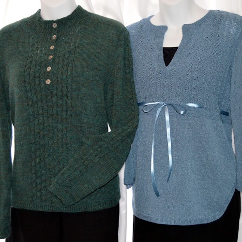 This is the back view of the garments. These are great for all seasons with 3 Set-In Sleeve Lengths! Mock Lace, Numerous Variations, Hints & Techniques.